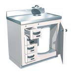 Each storage drawer can easily be removed for cleaning or decontam-intion and features a card slot to identify its contents. It has a 4” backsplash and stainless steel countertop. When multiple cabinets are purchased, a unified countertop can provide for an ideal, continuous work surface.